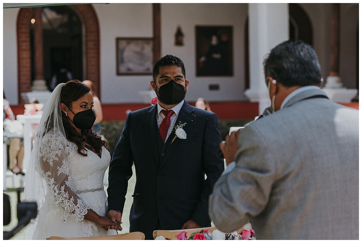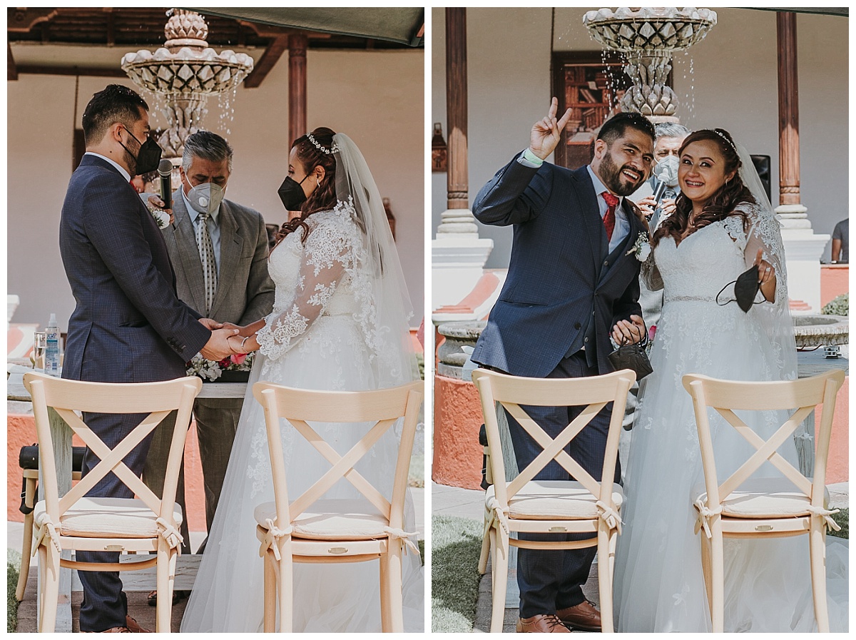 Posteriormente fuimos testigos de su enlace en la capilla que se ubica dentro de la hacienda y de la boda civil en el jardín justo detrás de ella.